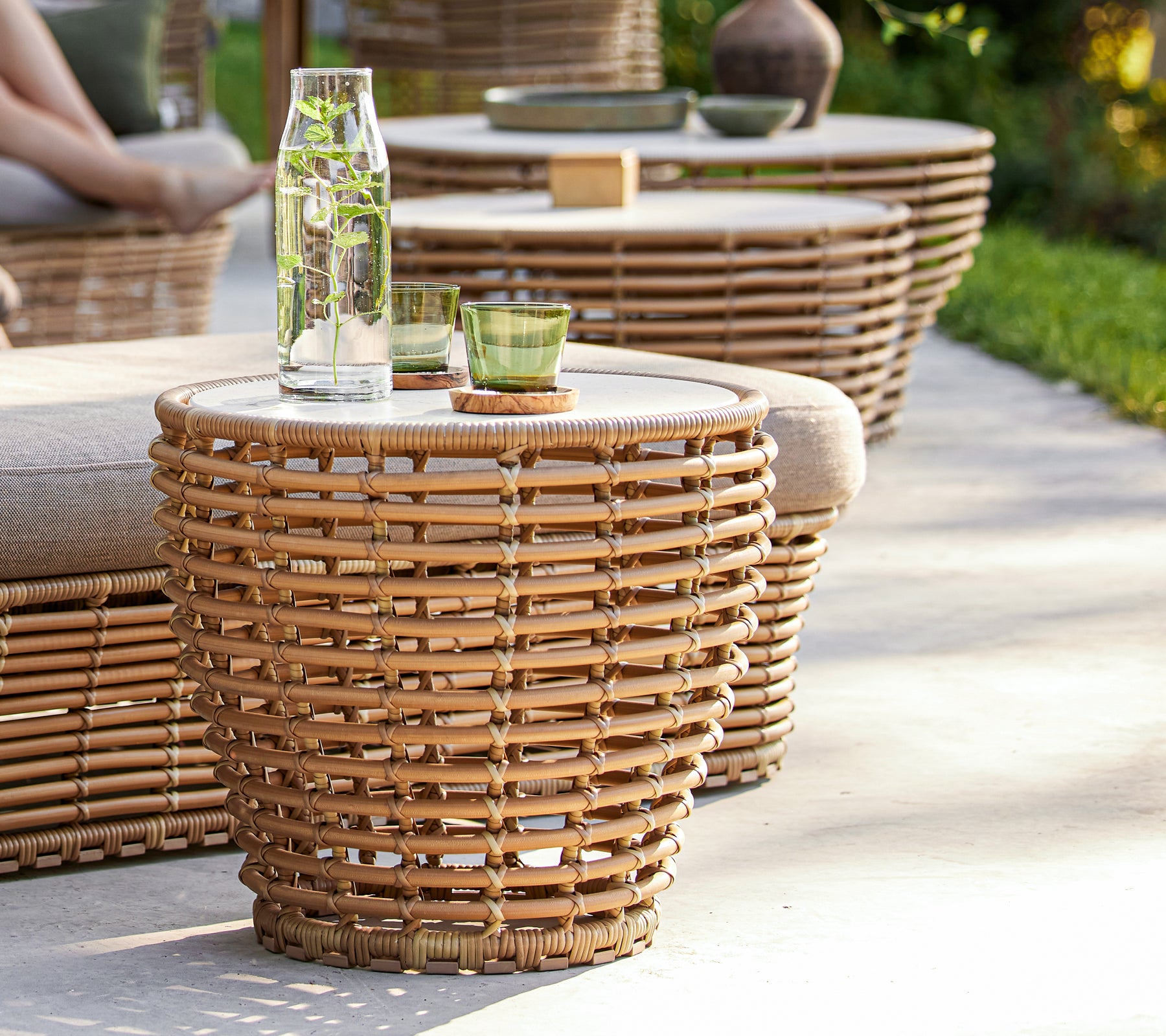 La table basse Basket a été conçue en collaboration avec Søren Rose Studio. Inspirée par la nature, cette table basse ronde exprime un design organique. La table basse Basket est fabriquée en Cane-line Weave®, une matière durable, sur une structure en acier galvanisé à chaud et est surmontée d’un élégant plateau en céramique. La combinaison de courbes douces et du dessus de table en céramique crée un look à la fois audacieux et raffiné pour votre salon d’extérieur. Les tables basses Basket sont disponibles en trois dimensions, qui se complètent à merveille.