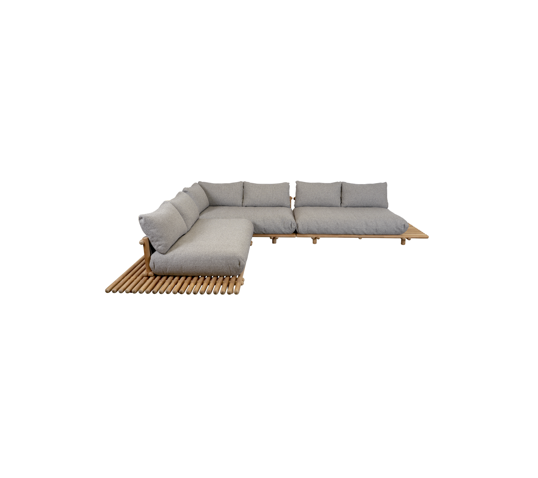 Le canapé d’angle grand format Sticks Platform, composé de trois modules de canapé, offre un espace d’assise généreux, idéal pour des moments de détente décontractés, que vous profitiez d’un instant de solitude ou que vous partagiez un moment avec vos proches. Sa structure durable est disponible en teck certifié et en aluminium thermolaqué résistant. Si vous souhaitez conserver la belle couleur dorée du teck, nous vous recommandons d’utiliser nos produits d’entretien pour teck.